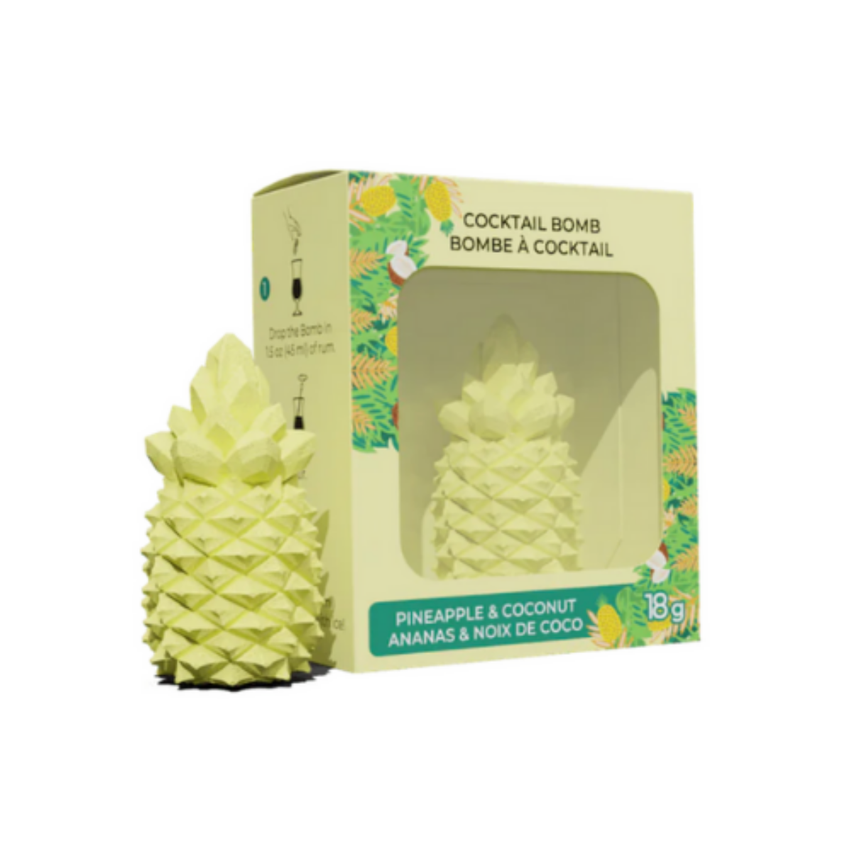 Offrez-vous une véritable escapade exotique avec notre délicieuse Bombe à Cocktail Ananas & Noix de Coco ! C’est l’incarnation même du rafraîchissement- avec son mélange croquant et rafraîchissant d’ananas juteux et de noix de coco douce et crémeuse- créant un délice tropical. Vous avez soif ? Préparez la boisson tropicale la plus simple à la maison avec notre Bombe à Cocktail.