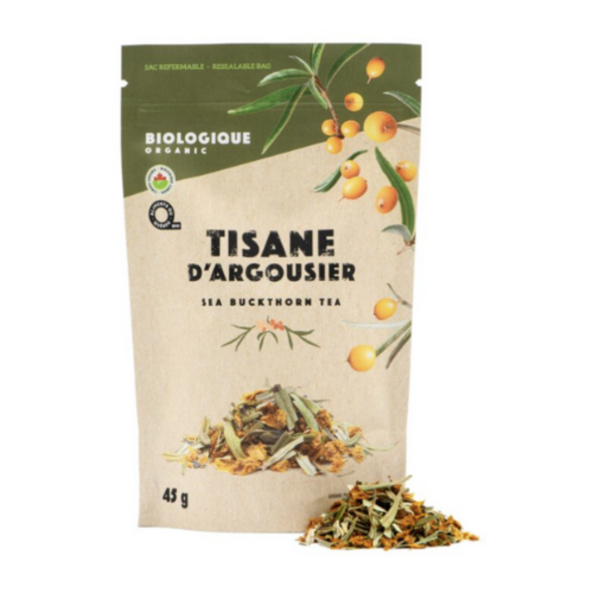 Découvrez notre tisane d’argousier- une création authentique qui célèbre les bienfaits de cette baie nordique exceptionnelle. Cette infusion de 45 grammes est élaborée avec soin à partir de feuilles d’argousier torréfiées et de pulpe séchée provenant de cultures biologiques.